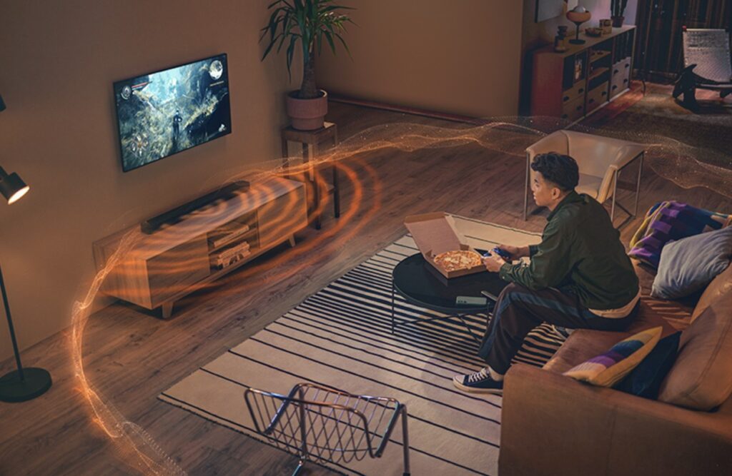As far as a straight 5.0 soundbar goes, you place it in front of the TV and can sit three or more metres away. Sound will be, as expected, front-centric as it cannot create a Dolby Atmos envelope (as it has no rear, side-firing speakers or up-firing speakers).